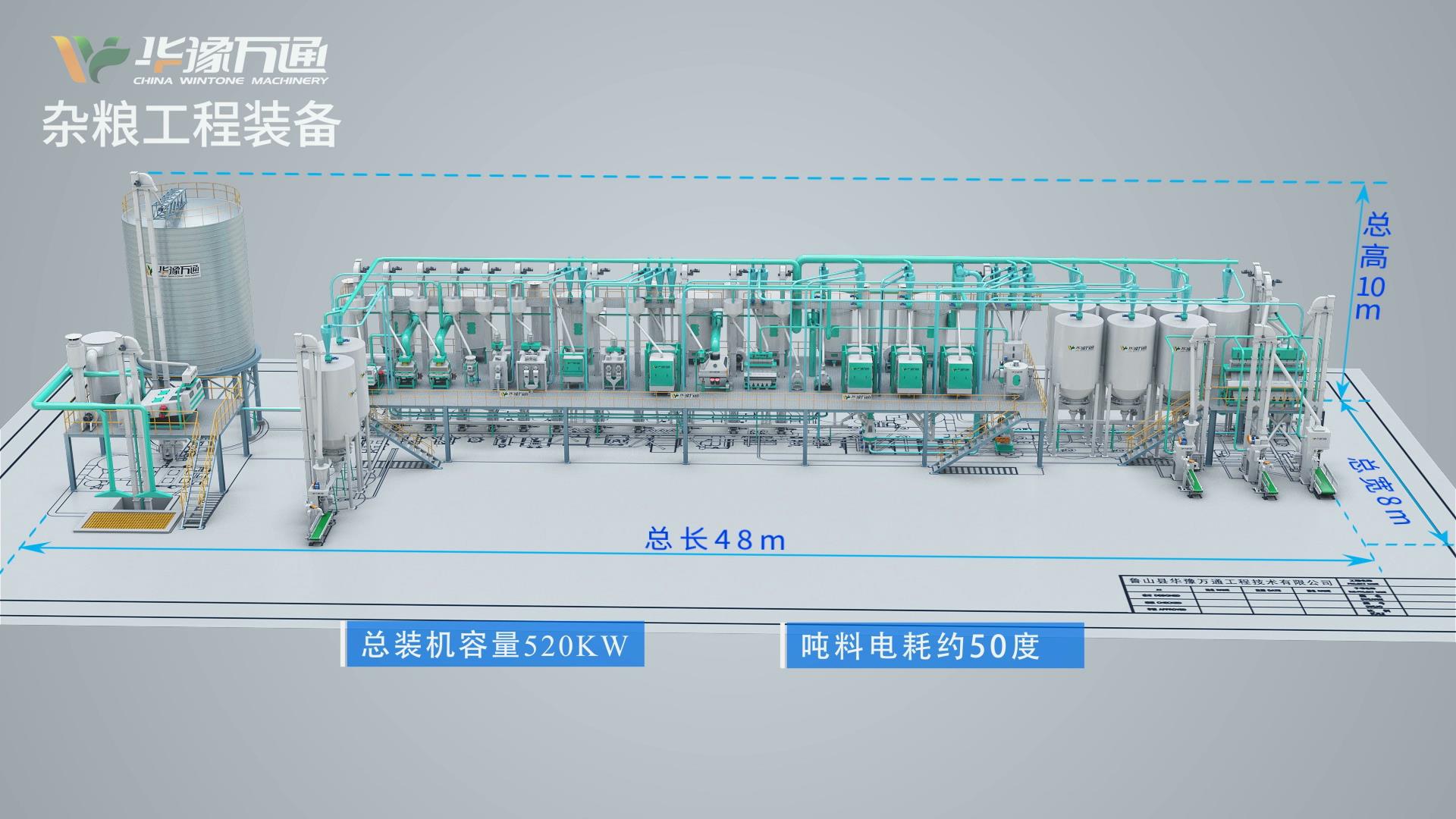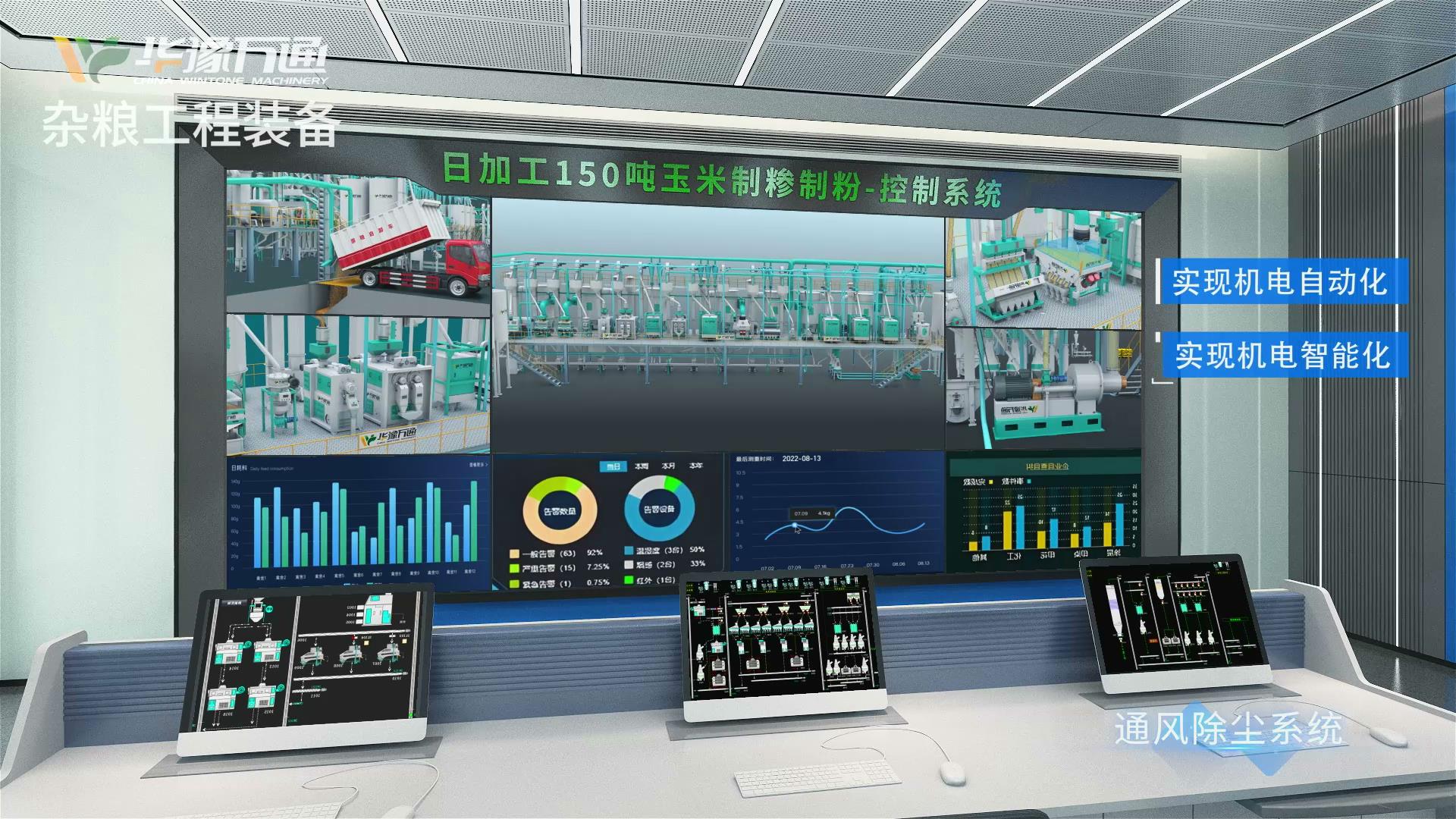 華豫萬通日加工150噸玉米制糝制粉創(chuàng)新工藝,設(shè)計(jì)為兩層平臺(tái)結(jié)構(gòu),三層設(shè)備布置,總長48m,寬8.0m,高10m,總裝機(jī)容量520kw,噸料電耗約50度,糝粉總收率≥65,糝內(nèi)目測(cè)無皮、無黑星,粉內(nèi)無麩皮,遠(yuǎn)超國家標(biāo)準(zhǔn)。配備PLC智能化控制,可實(shí)現(xiàn)智慧化,數(shù)字化,可視化,無紙化生產(chǎn)。