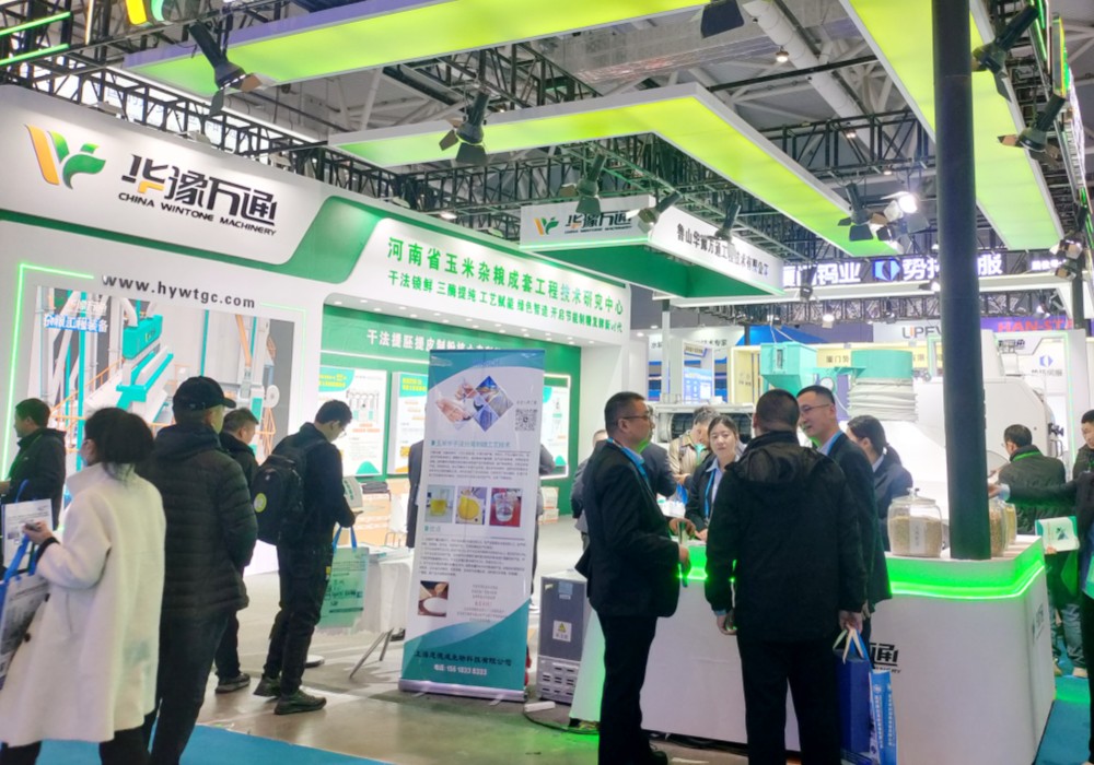 展臺上,華豫萬通展出的智能玉米揉搓脫胚機、智能玉米胚芽搓光機、智能玉米選胚機、氣動伺服磨粉機等玉米提胚制低脂玉米粉核心設備,以高品質的外觀、高精尖的技術吸引了眾多參觀者的目光。該套核心設備能耗低、成品收率高、脂肪含量低、灰分低、綠色環保,可滿足葡萄糖、發酵企業的原料應用。